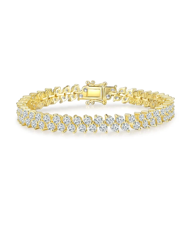 Genevive Sterling Silver 14K Gold Plated Baguette Cubic Zirconia Tennis Bracelet