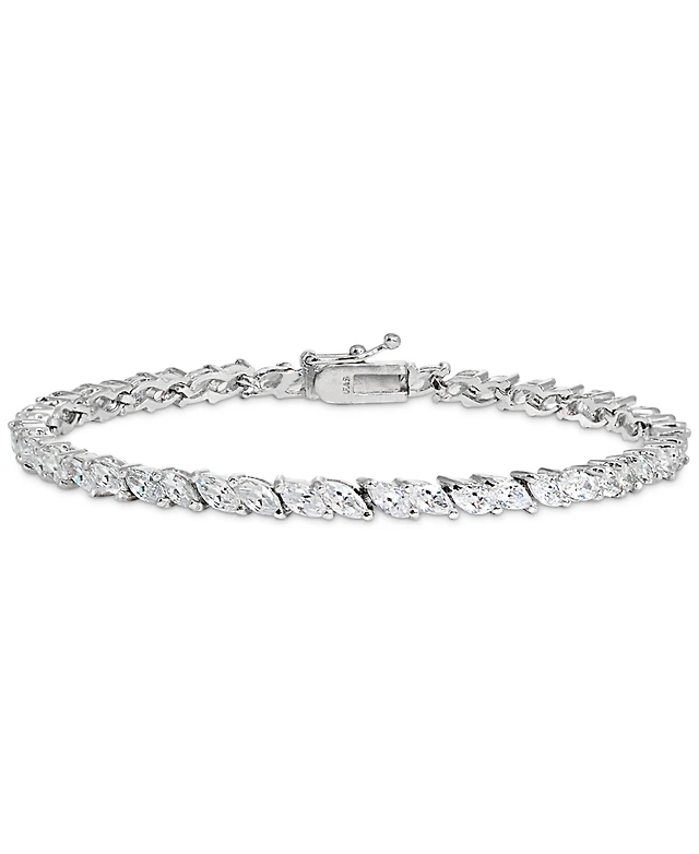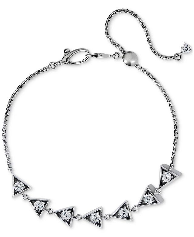 Macy's Fine Silver Plated Cubic Zirconia Hexagon Shaped Bezel Bolo Adjustable Bracelet