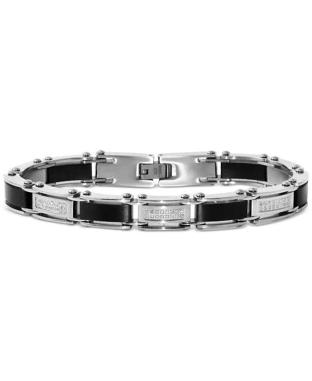 Esquire Men's Jewelry Black Diamond Chevron Link Bracelet (1/4 ct. t.w.) in Stainless Steel, Created for Macy's