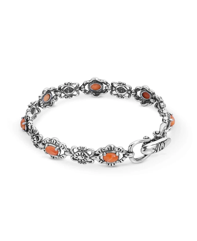 Macy's 1 ct. t.w 2mm Round Cut Cubic Zirconia Ruby Red Glass Stones Cluster Flower Link Bracelet, Created for