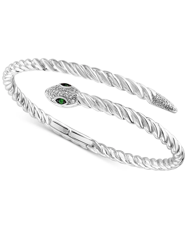 14k Yellow Gold Plated with Cubic Zirconia Leopard Bangle Bracelet in Sterling Silver