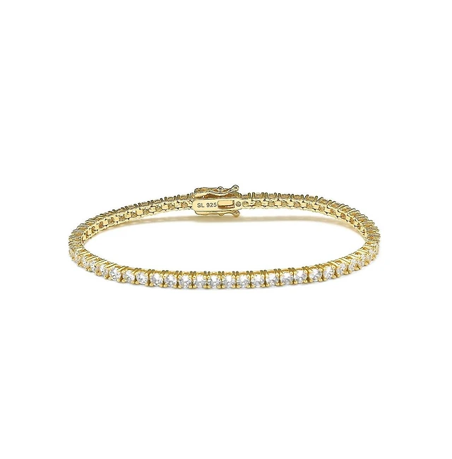 Genevive Sterling Silver 14K Gold Plated with Baguette Cubic Zirconia Bangle Bracelet