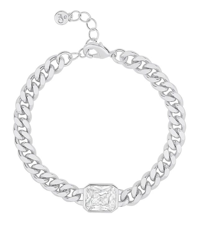 Rachel Glauber 14K Gold Plated with Clear Cubic Zirconia Rectangular Link Bangle Bracelet