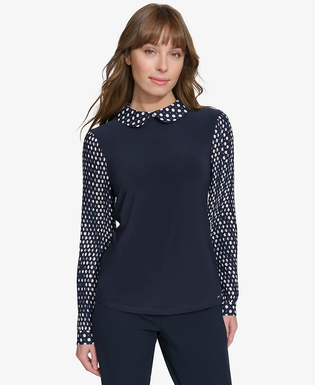 Dkny Women's Printed Contrast-Collar Surplice Top