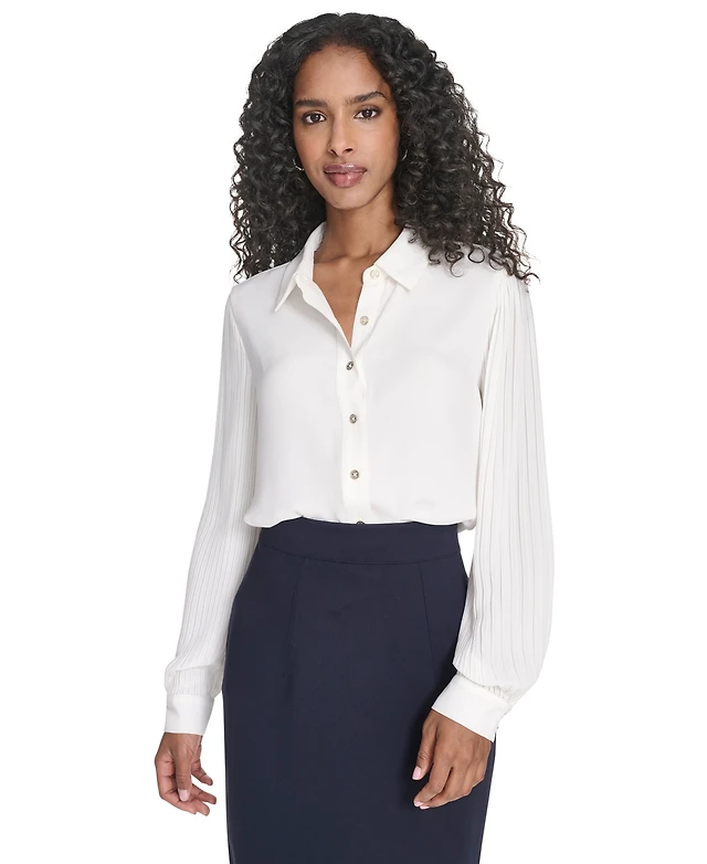 Calvin Klein Women's Printed Crepe Long Sleeve Top