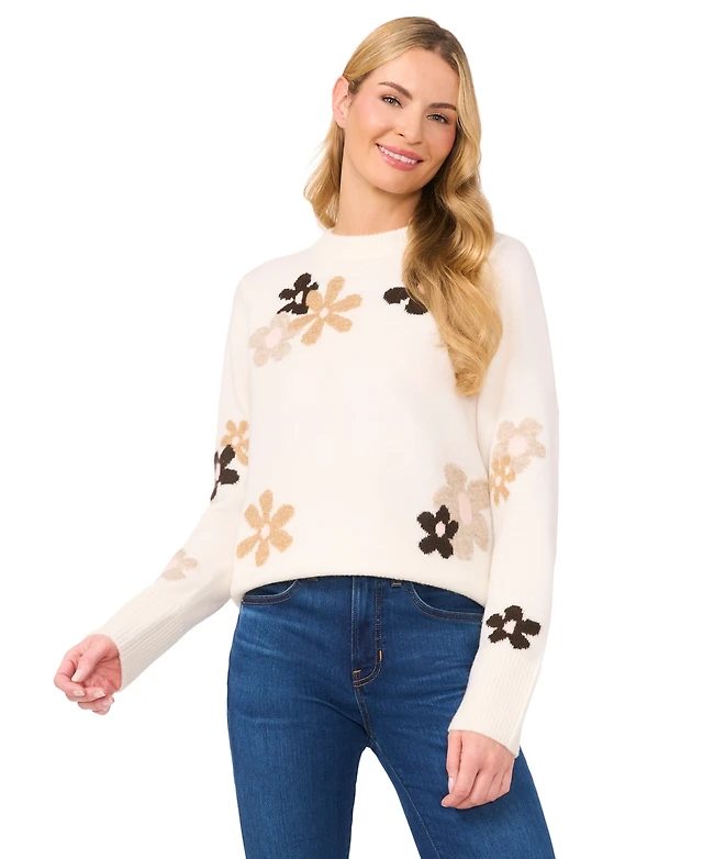 CeCe Women's Geo Pattern Jaq Button Up Cardigan Sweater