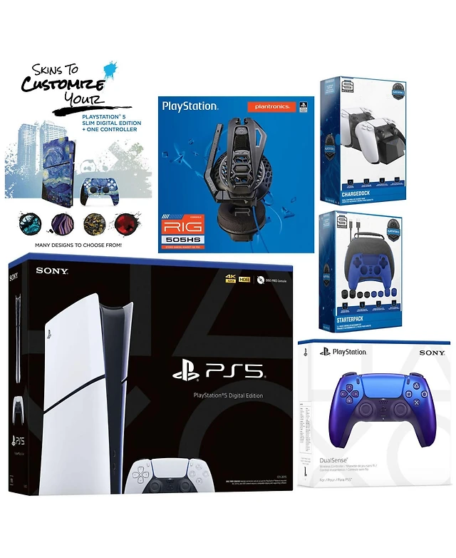 Sony Playstation 5 Slim Digital with Extra Volcanic Red Controller, Plantronics Headset, Gamer Kit