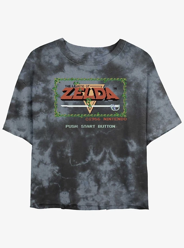 Nintendo The Legend of Zelda Pixelated Game Intro Tie-Dye Womens Crop T-Shirt