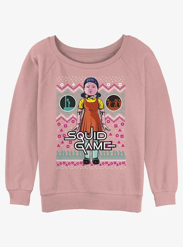 Squid Game Red Light, Green Light Ugly Christmas Girls Slouchy Sweatshirt