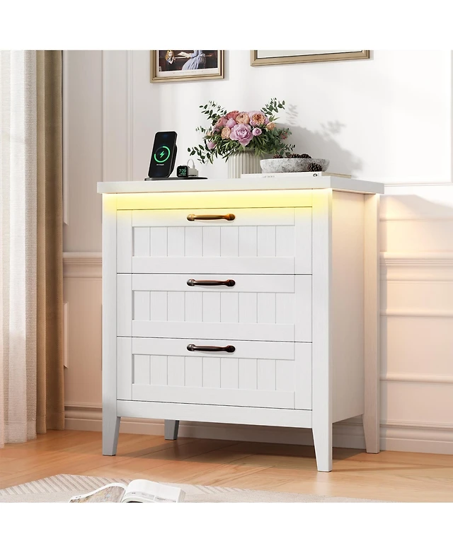 gaomon 3-Drawer Wooden Dresser with Led Lights & Charging Station