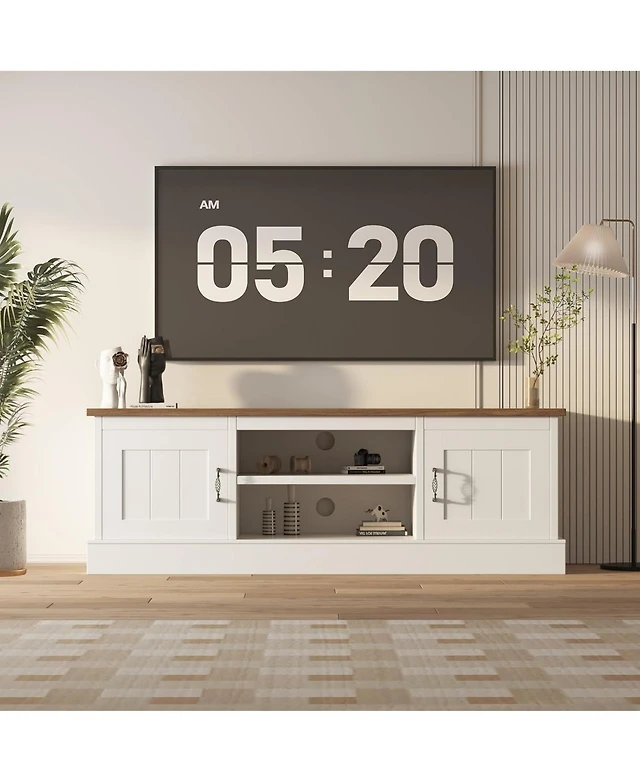 gaomon 66" Farmhouse Home Tv Stand for Up to 75" Television, Entertainment Center with Storage & Adjustable Shelf