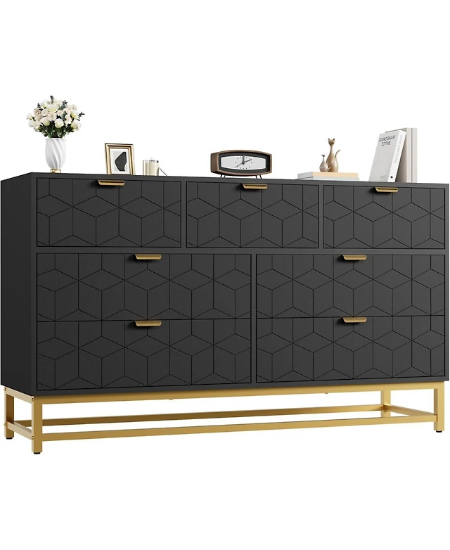 gaomon 7 Drawer Wooden Dresser with Open Compartments, Freestanding Storage Organizer for Bedroom, Nursery