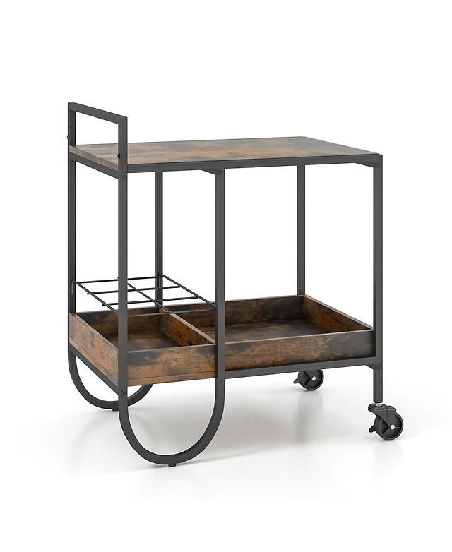 Sugift Rolling Buffet Serving Cart with Removable Metal Wire Wine Rack