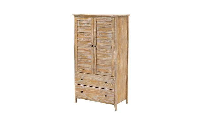 Slickblue Farmhouse Louvered Armoire Distressed Driftwood Finish, Solid Pine Wood