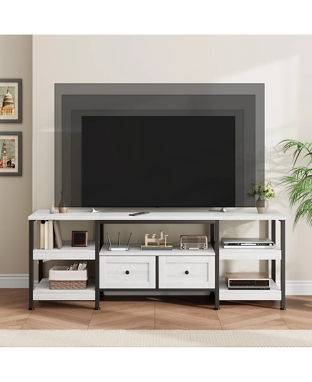 Gaomon 63" Industrial Tv Stand with 2 Drawers, Entertainment Center with Open Storage Shelves