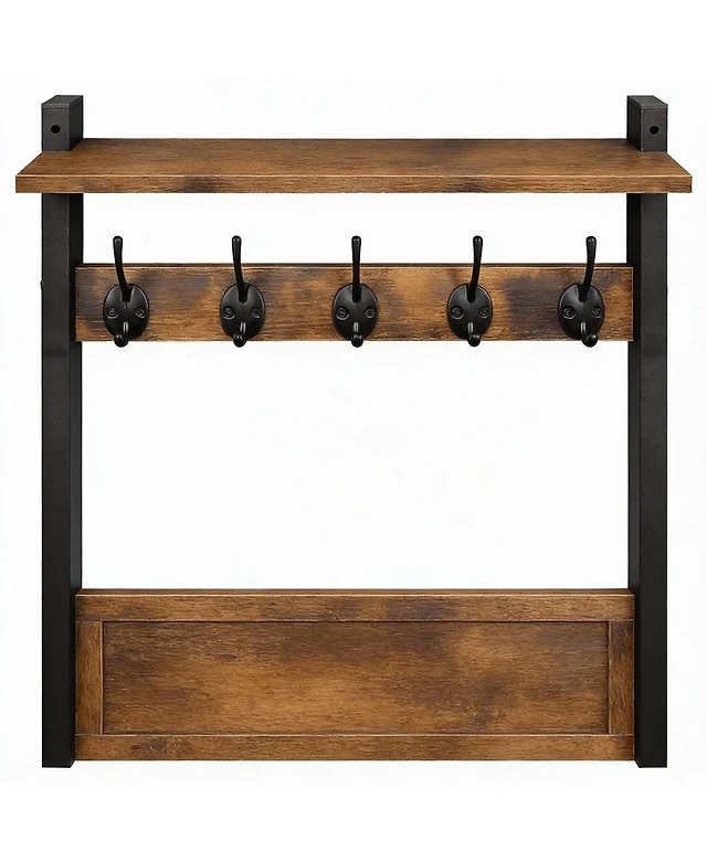 Homcom Wooden Hallway Coat Rack with Five Steel Hooks and Hinge Storage Sitting Area