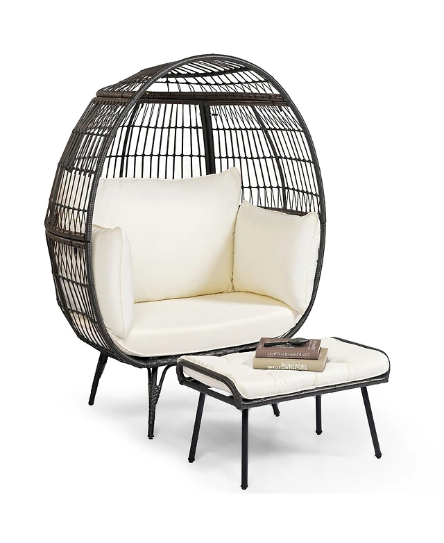 Gymax 2 Pcs Patio Wicker Lounge Basket Set Oversized Egg Chair w/ Soft Cushions