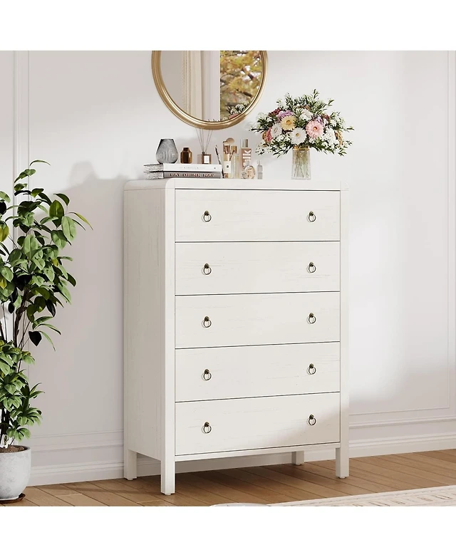 gaomon 5-Drawer Tall Dresser for Bedroom, Farmhouse Wooden Chest with Wide Metal Handles, Storage Organizer