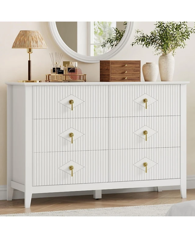 gaomon Fluted 6 Drawers Dresser for Bedroom, 54" Wide Modern Chest of with Metal Handle, Wooden Organizer Bedroom.