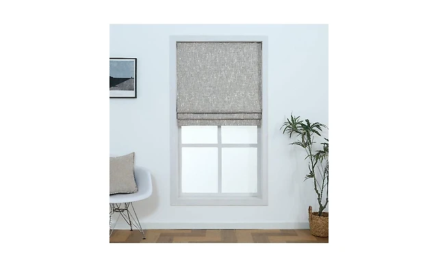 Shadisfy Linen Blended Belgian 100% Blackout Roman Shade Poly 27x64 Light Grey