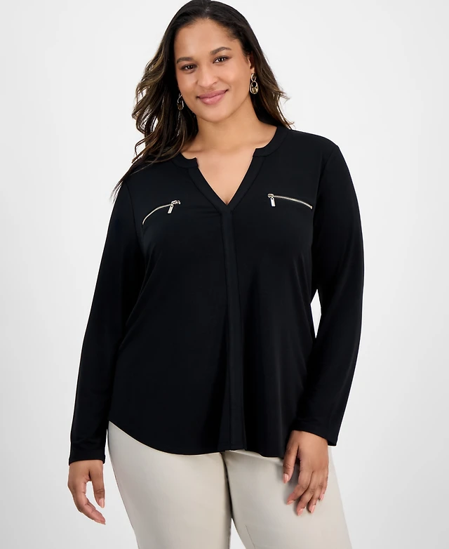 On 34th Trendy Plus Embellished-Neck Long-Sleeve Sweatshirt, Macy's Exclusive