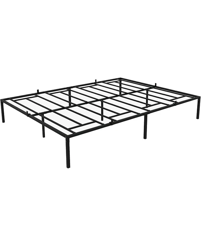 14 Inch Metal Queen Bed Frame with Rounded Corner, Heavy Duty Non-Slip Bed Frame with Steel Slats, No Box Spring Required Noise-Free Easy Assembly, 9-