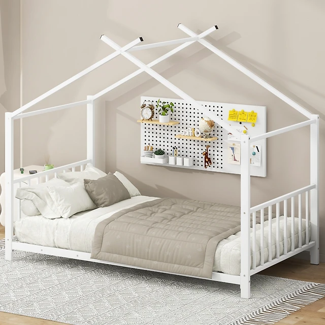 Streamdale Furniture Wood Full House Platform Bed with Led & Storage