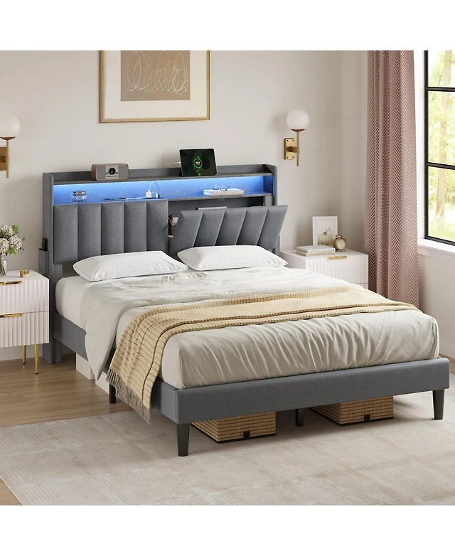 Streamdale Queen Upholstered Led Smart Bed with Storage