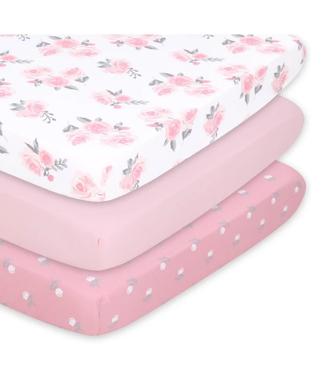 The Peanutshell Pack n Play, Mini Crib, Portable Crib or Fitted Playard Sheets for Baby Girl, Pink Roses and Ditsy Floral, 3 Pack Set