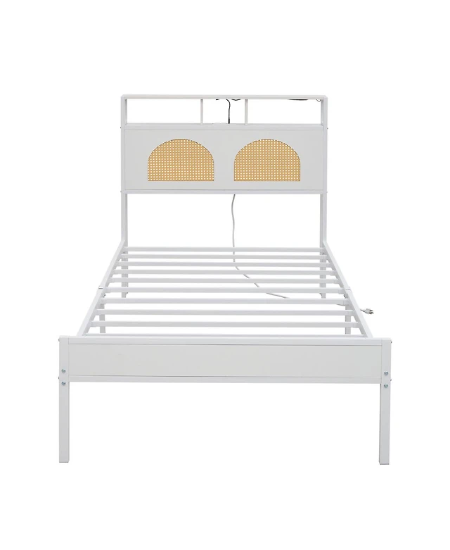 gaomon Bed Frame with Rattan Headboard, Sturdy Metal Base, Boho-Style Cane Support, No Box Spring Required, Wood Metal Platform Beds