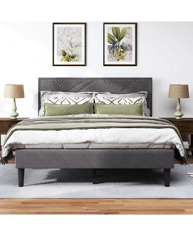 Sugift Modern Upholstered Platform Bed with Linen Headboard