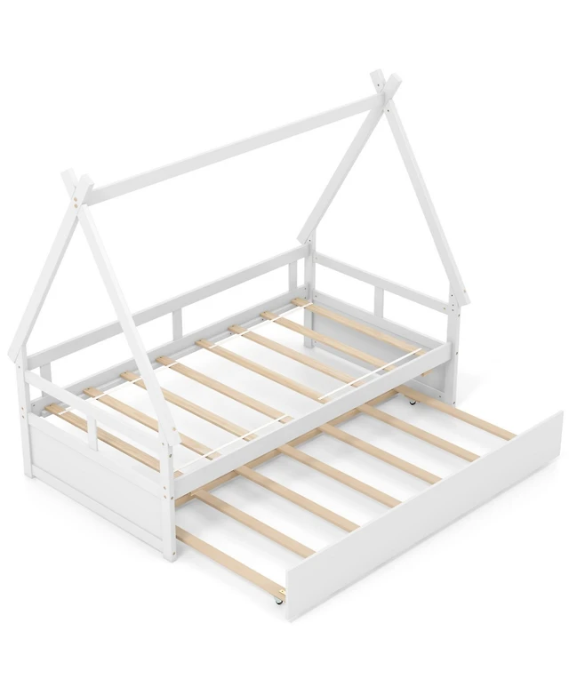 Gouun House Bed with Trundle and Safety Guardrail