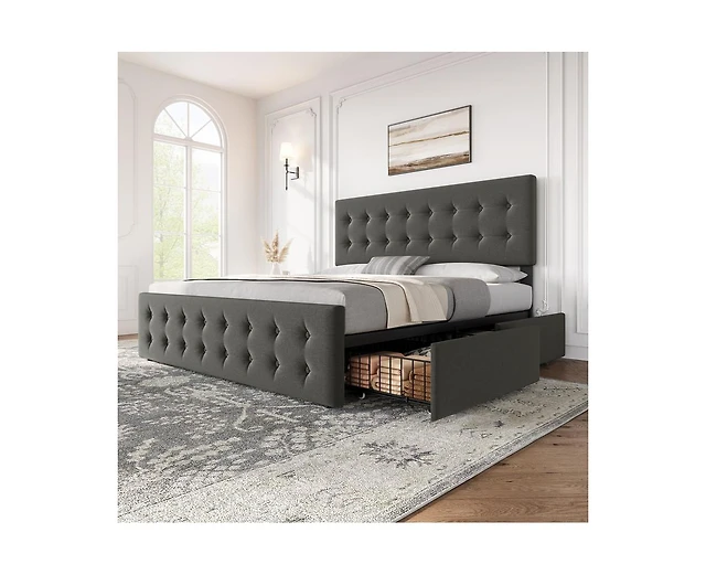 gaomon Queen Bed Frame with 4 Storage Drawers and Headboard, Velvet Upholstered Platform Wooden Slats Support, Button Tufted Desig
