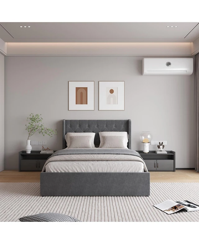 gaomon Queen Bed Frame Upholstered Platform Bed Space Saving, for Living Room, Guest Room