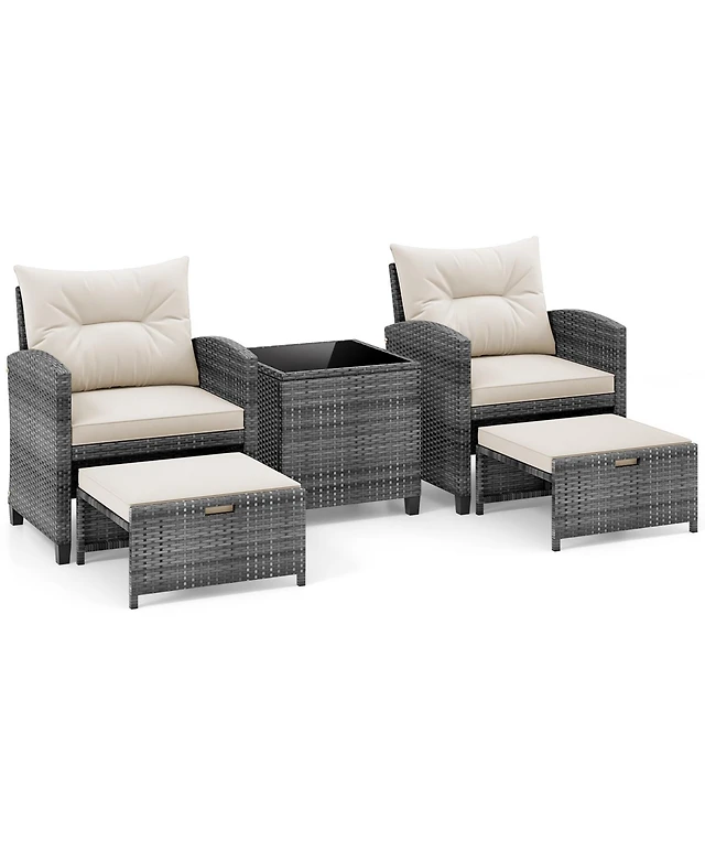 5-Piece Outdoor Rattan Furniture Set with 2 Ottomans and Glass Coffee Table