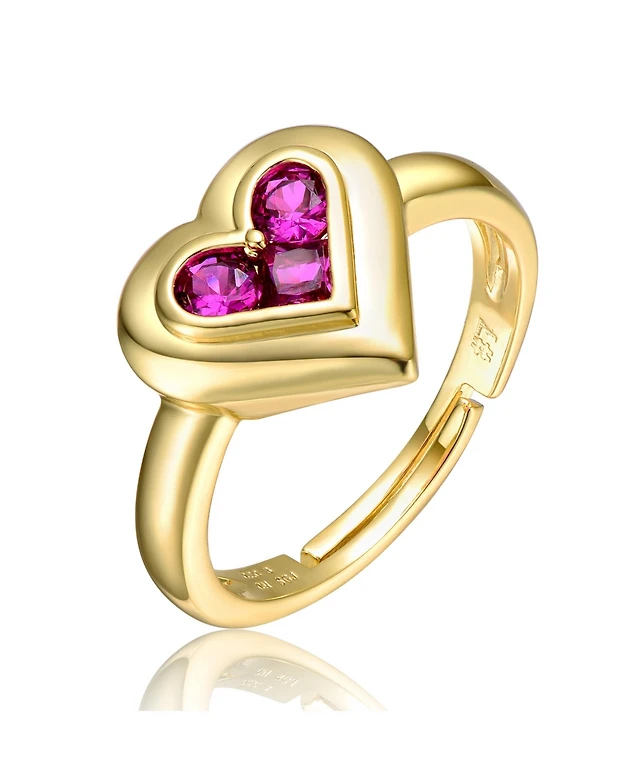Genevive Sterling Silver 14K Gold Plated with Round Green & Clear Cubic Zirconia Band Ring