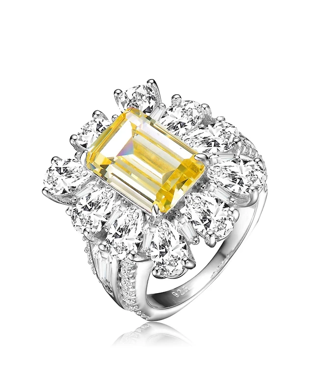 Suzy Levian Rose Sterling Silver Cubic Zirconia Three Row Multi-Shape Ring