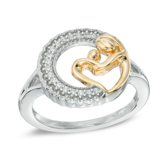 1/5 CT. T.w. Diamond Double Row Open Heart Ring in Sterling Silver with Yellow Rhodium