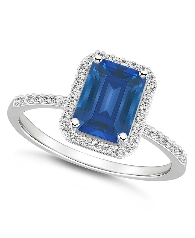 Blue Topaz (18 ct. t.w.) and Diamond (1/2 Octagon Ring 14k White Gold