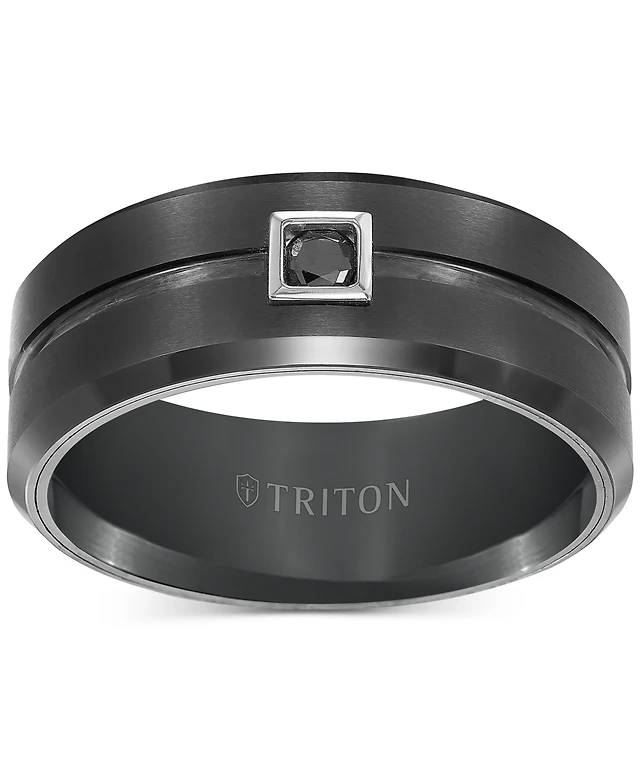 Triton Men's Black Tungsten Ring, Diamond Wedding Band (1/10 ct. t.w.)