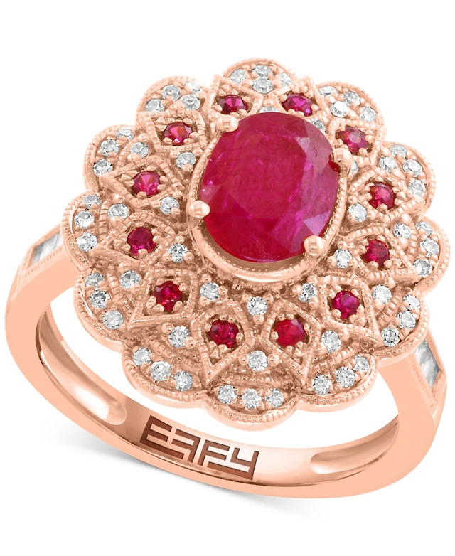 Effy Ruby (1-3/8 ct. t.w.) & Diamond (1-1/2 ct. t.w.) Flower Ring in 14k Gold
