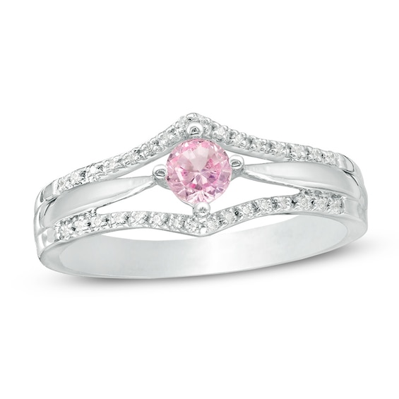 4.0mm Lab-Created White Sapphire and 1/10 CT. T.w. Diamond Infinity Frame Promise Ring in Sterling Silver