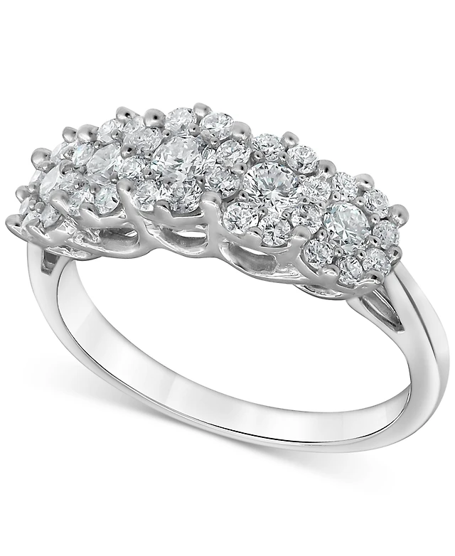 Diamond Round & Baguette Multirow Band (1 ct. t.w.) 14k White or Yellow Gold
