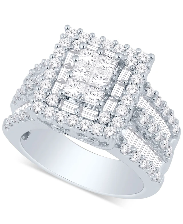 Effy Diamond Baguette & Round Double Row Ring (1/2 ct. t.w.) in 14k White Gold