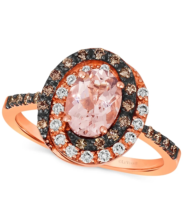 Le Vian Peach Morganite (7/8 ct. t.w.) & Diamond (3/8 ct. t.w.) Halo Ring in 14k Rose Gold