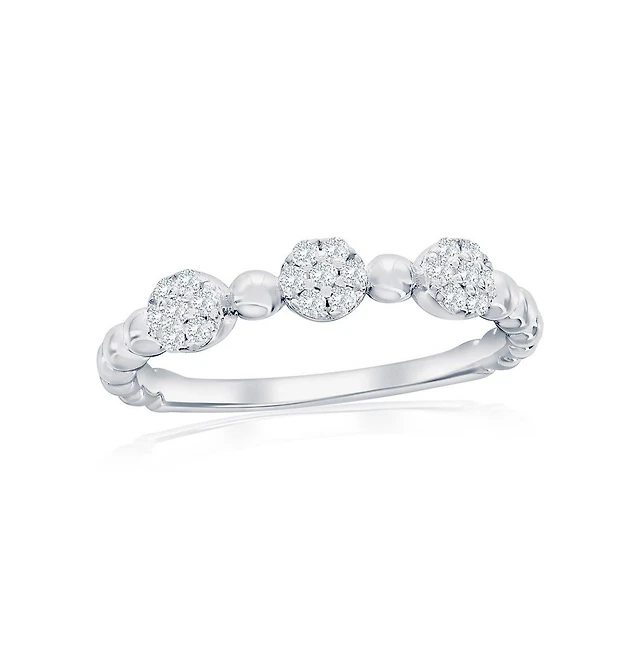 Sterling Silver, Round Pave Cz & Beaded Ring