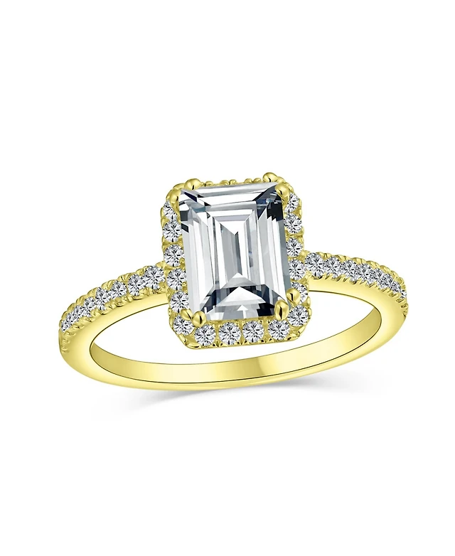 Bling Jewelry Art Deco Style 3CT Halo Cz Emerald Cut Promise Ring Rose Gold Plated Sterling Silver
