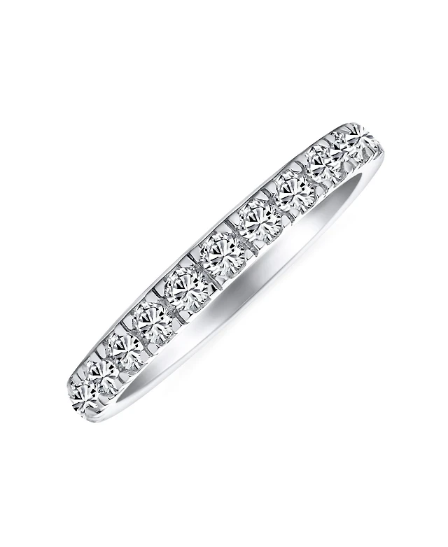 Suzy Levian Sterling Silver Cubic Zirconia Round U-Shape Eternity Band Ring