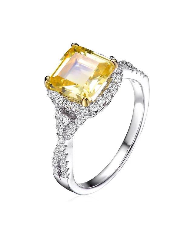 Sterling Silver White Gold Plated with Pink or Yellow Cubic Zirconia Three-Stone Ring