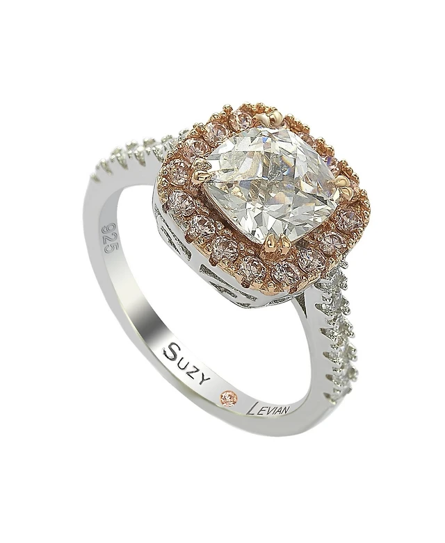 Suzy Levian Sterling Silver Oval Cut White Cubic Zirconia Halo Center Stone Ring